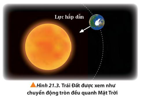 1. Trong hệ Mặt Trời, chuyển động của một số hành tinh như Trái Đất được xem gần đúng là chuyển động tròn đều xung quanh Mặt Trời (Hình 21.3). Lực nào đóng vai trò là lực hướng tâm trong chuyển động này của Trái Đất.