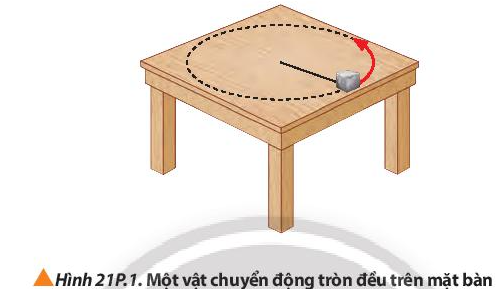 3. Một vật nặng có kích thước nhỏ, có khối lượng 0,50 kg, được buộc vào đầu một dây có chiều dài 1,5 m. Vật chuyển động đều trên đường tròn nằm ngang (Hình 21P.2). Cho biết dây chỉ chịu được lực căng tối đa bằng 50 N. Hãy tính tốc độ quay lớn nhất của vật để dây không bị đứt.