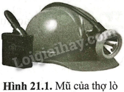 Chiếc mũ của người thợ lò (hình 21.1) có một bóng đèn LED, một công tắc và một acquy và các dây dẫn điện. Em hãy vẽ sơ đồ mạch điện của chiếc mũ.