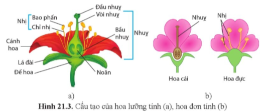 CH 1: Quan sát hình 21.3, kể tên các bộ phận của hoa.