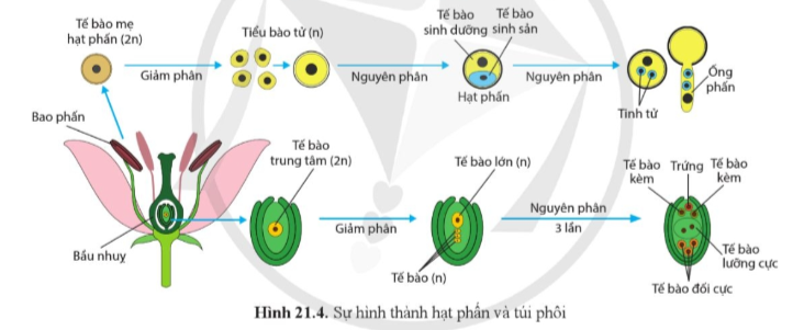 CH 3: Quan sát hình 21.4, mô tả quá trình hình thành hạt phấn, túi phôi.