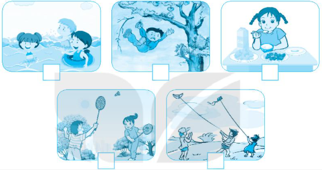 Đánh dấu x vào ô trống dưới hình có hoạt động phù hợp đê chăm sóc, bảo vệ cơ quan vận động. Viết vào chỗ (…) các hoạt động mà em thường xuyên làm để chăm sóc, bảo vệ cơ quan vận động. Tư thế ngồi của bạn nào trong hình dưới đây là sai? Nếu thường ngồi ở tư thế sai đó sẽ gây ra tác hại gì? Viết vào chỗ (…) câu trả lời của em. Đánh dấu x vào ô trống dưới hình thể hiện tư thế đúng. Tô màu vào hình vẽ các bạn đang vui chơi. Các hoạt động này có lợi hay có hại cho cơ quan vận động? Vì sao? Viết v
