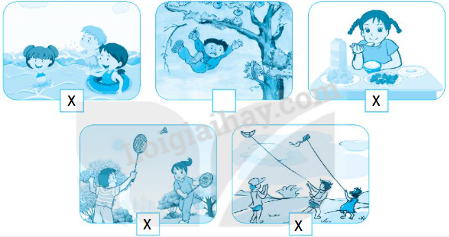 Đánh dấu x vào ô trống dưới hình có hoạt động phù hợp đê chăm sóc, bảo vệ cơ quan vận động.
