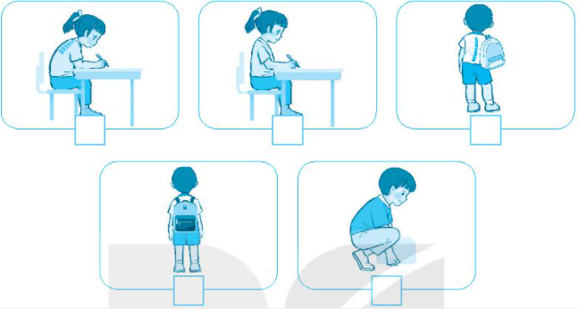 Đánh dấu x vào ô trống dưới hình thể hiện tư thế đúng.