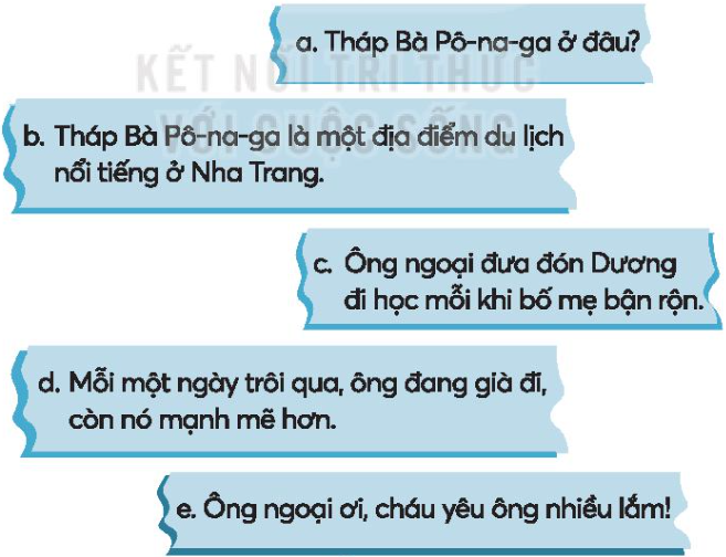 – Câu giới thiệu sự vật: b. Tháp Bà Pô-na-ga là một địa điểm du lịch nổi tiếng ở Nha Trang.
