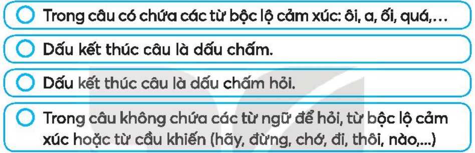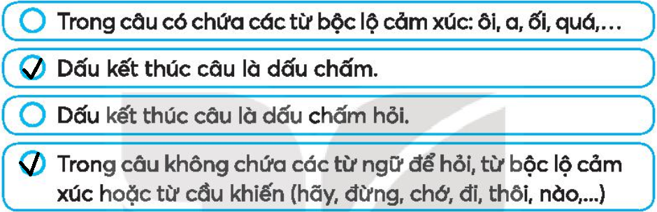 Đánh dấu tích vào ô trống trước dấu hiệu nhận diện câu kể.