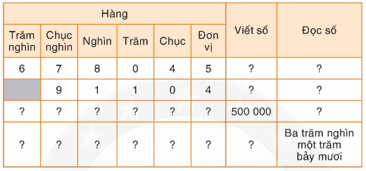 – Viết số: Viết các số lần lượt từ hàng trăm nghìn, hàng chục nghìn, hàng nghìn, hàng trăm, hàng chục, hàng đơn vị.