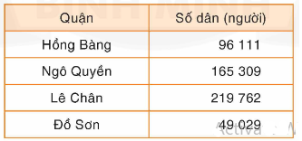 Bảng dưới đây cho biết số dân một số quận của thành phố Hải Phòng: