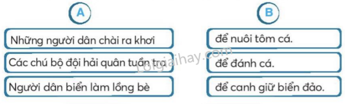 Nối từ ngữ ở cột A với từ ngữ phù hợp ở cột B để tạo câu.