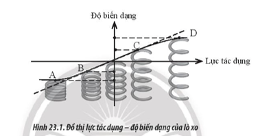 Trên Hình 23.1, ta có đồ thị biểu diễn độ biến dạng của một lò xo khi chịu tác dụng lực. Đoạn nào của đường biểu diễn cho thấy lò xo biến dạng theo định luật Hooke?