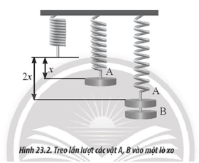 Treo lần lượt các vật A và B có khối lượng mA và m­ vào cùng một lò xo đang treo thẳng đứng như Hình 23.2. Ta có thể nhận xét gì về khối lượng của hai vật này?