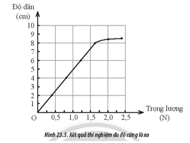 Một học sinh thực hiện thí nghiệm đo độ cứng của một lò xo và thu được kết quả như Hình 23.3. Độ cứng của lò xo này có giá trị bằng bao nhiêu?