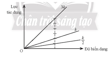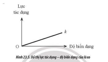 Hình 23.5 thể hiện đường biểu diễn sự phụ thuộc của lực theo độ biến dạng của một lò xo có độ cứng k. Hãy vẽ trên cùng đồ thị đường biểu diễn sự biến thiên của lực theo độ biến dạng của các lò xo có độ cứng 3k và k/2.