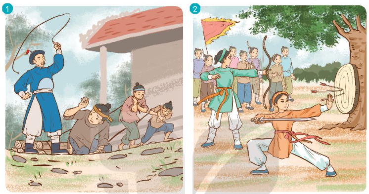 Tranh 2: Bấy giờ ở huyện Mê Linh có hai người con gái tài giỏi là Trưng Trắc và em là Trưng Nhị.