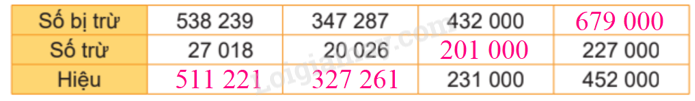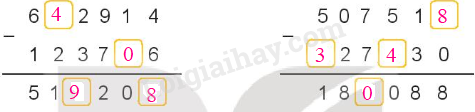 Trừ các số thẳng cột lần lượt từ phải sang trái để tìm chữ số thích hợp.