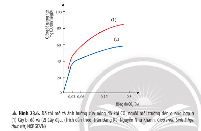 Hiệu quả của quá trình quang hợp sẽ phụ thuộc vào nồng độ khí carbon dioxide (CO2) ngoài môi trường.