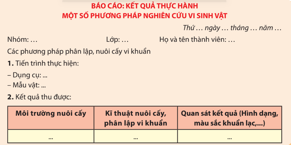 2. Bài 23. Thực hành: Một số phương pháp nghiên cứu vi sinh vật