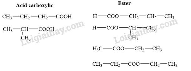 Các đồng phân cấu tạo carboxylic acid và ester có cùng công thức phân tử C4H8O2 là