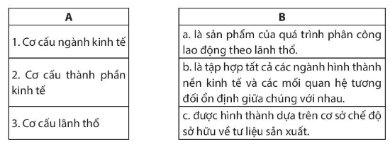 Cơ cấu kinh tế gồm ba bộ phận cơ bản hợp thành, đó là. Cơ cấu thành phần kinh tế được hình thành dựa trên. Phát biểu nào sau đây đúng với cơ cấu lãnh thổ? GDP là. Để đánh giá sự phát triển kinh tế của địa phương (cấp tỉnh hoặc thành phố trực thuộc trung ương) người ta dùng chỉ số