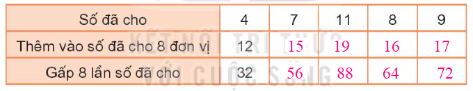 – Muốn thêm vào số đã cho 8 đơn vị ta cộng số đó với 8.