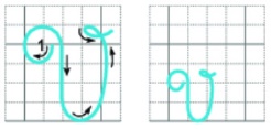 – Cách viết: Đặt bút trên đường kẻ 5, viết nét móc hai đầu (đầu móc bên trái cuộn vào trong, đầu móc bên phải hướng ra ngoài), lượn bút lên viết tiếp nét cong phải (hơi duỗi), tới đường kẻ 6 thì lượn vòng trở lại viết nét cong dưới (nhỏ), cắt ngang nét cong phải, tạo một vòng xoắn nhỏ (cuối nét), dừng bút gần đường kẻ 6.