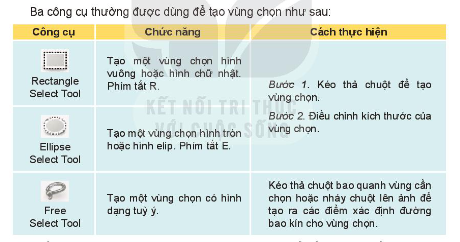 Vận dụng kiến thức trong bài và kiến thức thực tế của bản thân để trả lời câu hỏi. (Công cụ “Rectangle Select Tool”, Công cụ “Elliptical Select Tool”, Công cụ “Free Select Tool”, Công cụ “Select by Color Tool”, Công cụ “Fuzzy Select Tool”)