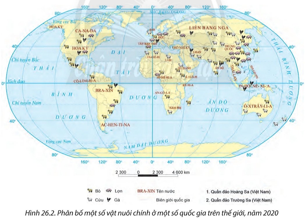 Quan sát hình 26.2 và đọc thông tin mục 2b (Một số vật nuôi chính trên thế giới).