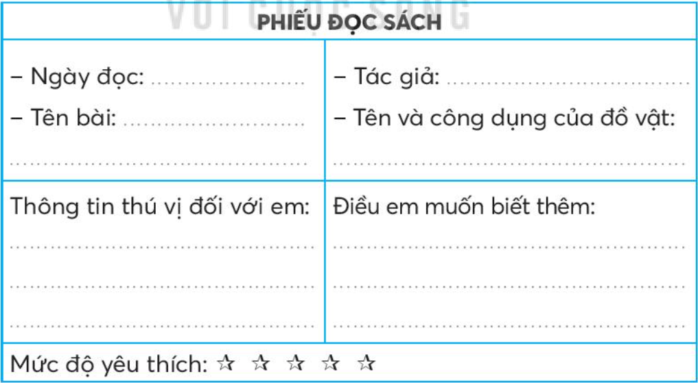 Đọc bài Rô-bốt đang đến gần cuộc sống hoặc tìm đọc bài văn, bài thơ về đồ vật thông mình giúp con người trong công việc và viết thông tin vào phiếu đọc sách.
