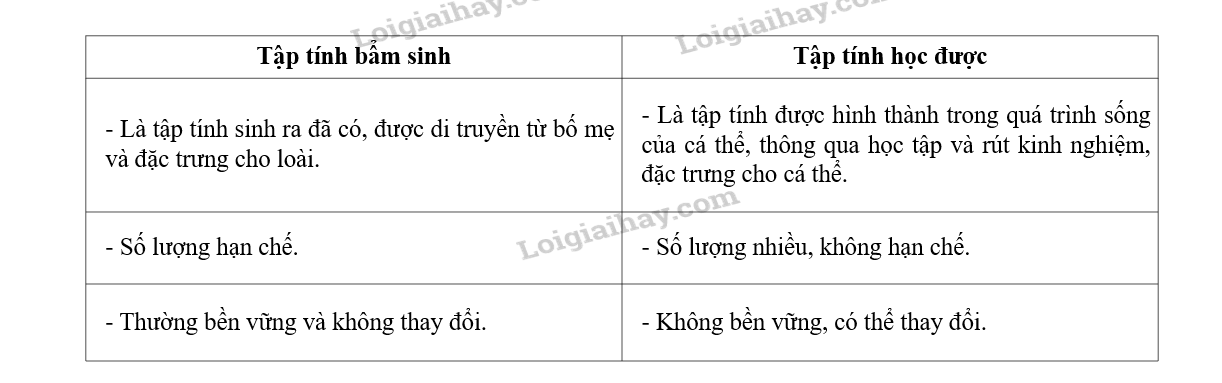 – Phân biệt tập tính bẩm sinh và tập tính học được: