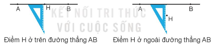 Bước 1: Đặt một cạnh góc vuông của ê ke trùng với đường thẳng AB và cạnh góc vuông thứ hai gặp điểm H.