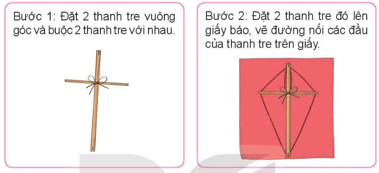 Và phần hấp dẫn nhất của dự án, Rô-bốt hướng dẫn các bạn làm diều từ những vật liệu đã chuẩn bị sẵn: 2 thanh tre (dài, ngắn khác nhau), 1 tờ giấy báo, cuộn dây, keo dán, kéo.