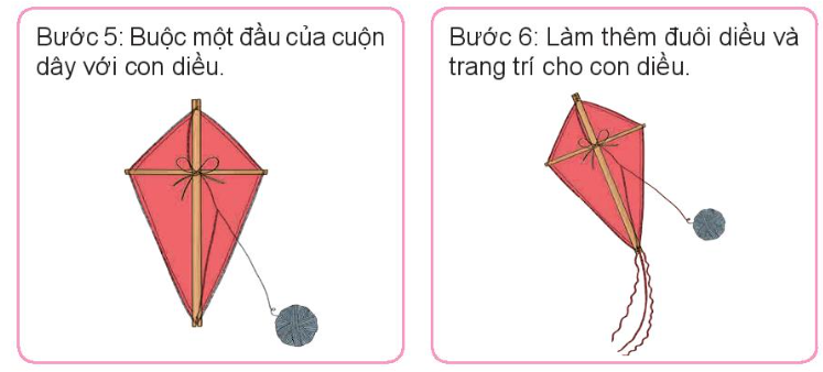 Dựa vào hướng dẫn của Rô-bốt, mỗi bạn tự làm cho mình một cánh diều và trang trí theo ý thích.