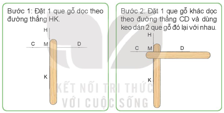 Trước tiên, để đặt được 2 que gỗ vuông góc với nhau, Rô-bốt hướng dẫn các bạn cách vẽ hai đường thẳng vuông góc.