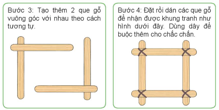 a) Sử dụng hình ảnh vừa vẽ và một số dụng cụ (que gỗ, keo dán, dây) để tạo khung tranh đơn giản.