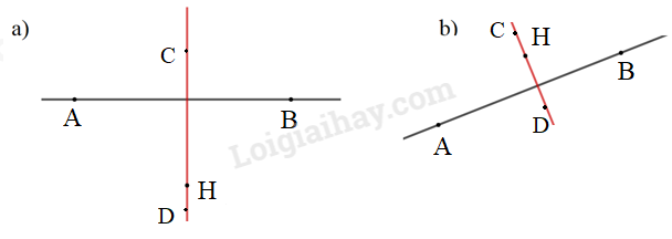 a) Vẽ đường thẳng CD đi qua điểm H và vuông góc với đường thẳng AB cho trước.