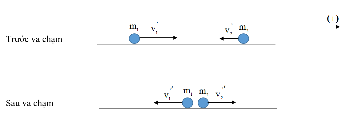 Chọn chiều dương là chiều chuyển động của m1 lúc đầu.