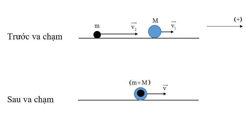 Trước va chạm: \(p = M{v_1} + m{v_2}\)