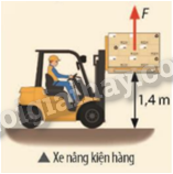 Một xe nâng tác dụng một lực hướng lên, có độ lớn 2 000 N để nâng kiện hàng từ mặt đất lên độ cao 1,4 m. Tính công của lực nâng.