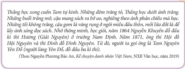 – Việc tự giác, tích cực học tập đã đem lại kết quả cho nhà thơ Nguyễn Khuyến: