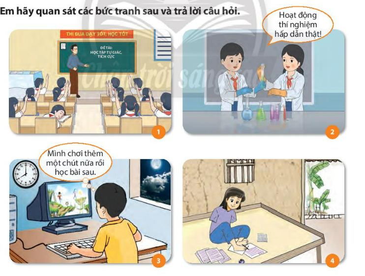 – Bức tranh nào thể hiện tính tự giác, tích cực học tập và chưa tự giác, tích cực trong học tập?