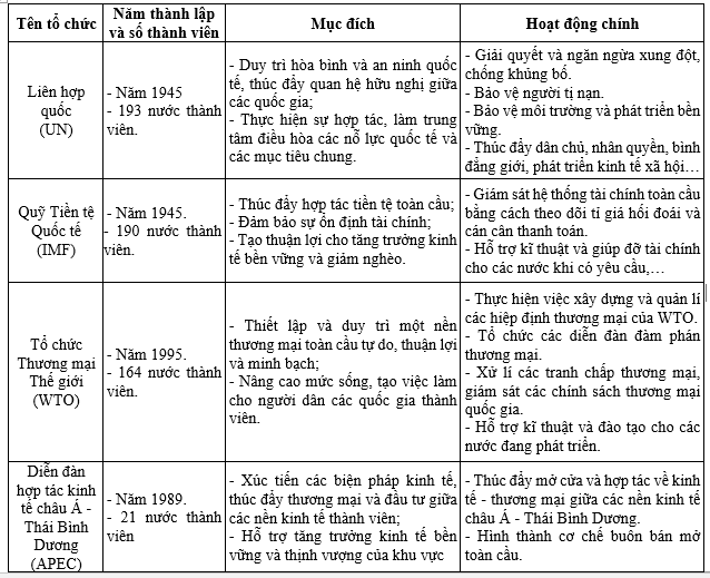 Dựa vào kiến thức đã học về một số tổ chức khu vực và quốc tế.