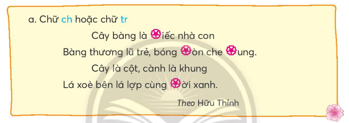 a. Em điền ch hoặc tr vào từng chỗ trống cho đúng chính tả.