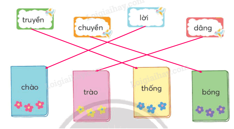 Chọn tiếng ở chiếc nhãn phù hợp với tiếng ở quyển vở để tạo thành từ ngữ đúng: