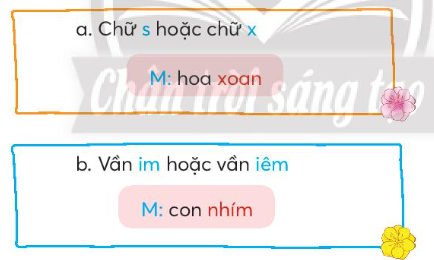 a. Em tìm từ ngữ chỉ tên gọi con vật, cây, hoa, quả chứa tiếng có chữ s hoặc x.