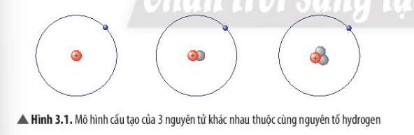 Quan sát Hình 3.1, em hãy cho biết sự khác nhau về cấu tạo giữa 3 nguyên tử hydrogen?