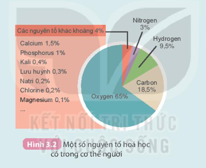 c) 4 nguyên tố hóa học chiếm thành phần phần trăm khối lượng lớn nhất của cơ thể con người: oxygen, carbon, hydrogen, nitrogen.