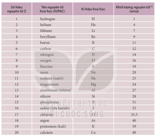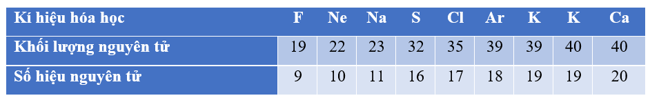 Số hiệu nguyên tử và khối lượng nguyên tử của một số nguyên tử được cho ở bảng sau: