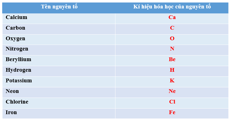 Kí hiệu hóa học gồm một hoặc hai chữ cái có trong tên gọi của nguyên tố, với chữ cái đầu viết hoa, chữ cái sau viết thường.
