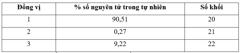 Một nguyên tố X tồn tại dưới dạng ba đồng vị tự nhiên có thông tin được cho trong bảng dưới đây: