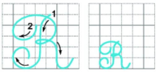 + Gồm 2 nét: Nét 1 giống nét 1 của chữ viết hoa B và chữ viết hoa P. Nét 2 là kết hợp của 2 nét cơ bản: nét cong trên và nét móc ngược phải nối liền với nhau tạo vòng xoắn ở giữa.
